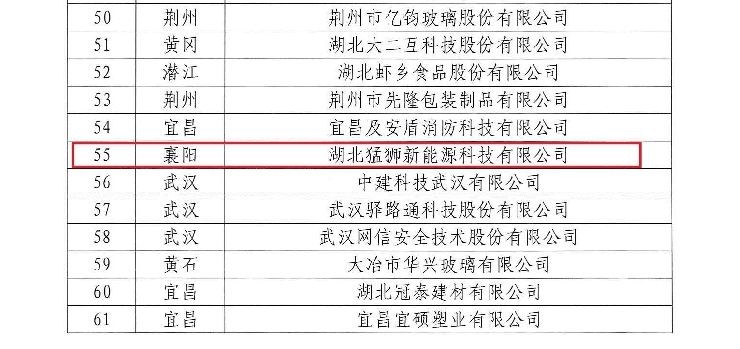 近日,湖北省知识产权局公布第五批“湖北省知识产权示范建设企业”名单,猛狮科技旗下湖北猛狮新能源科技有限公司入选。